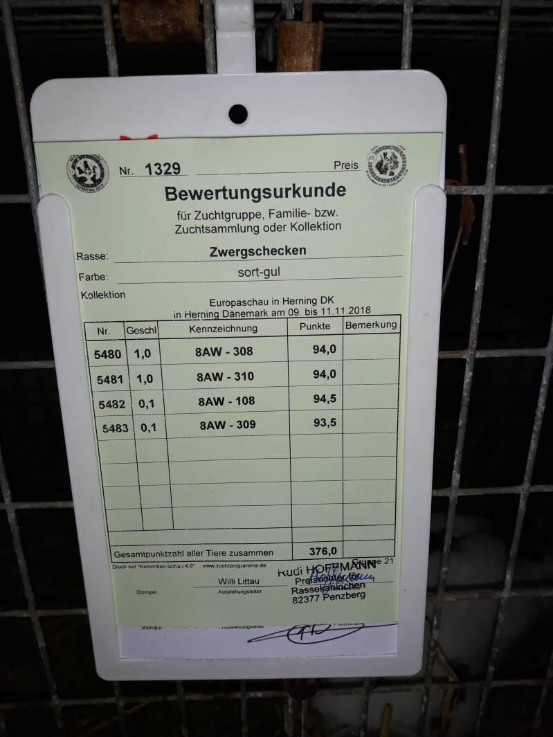 Op de EDC zijn de dieren gekeurd volgens de Nederlandse standaard en de Europese Standaard. In beide klassen werd 97 punten behaald en de titel van groepswinnaar.