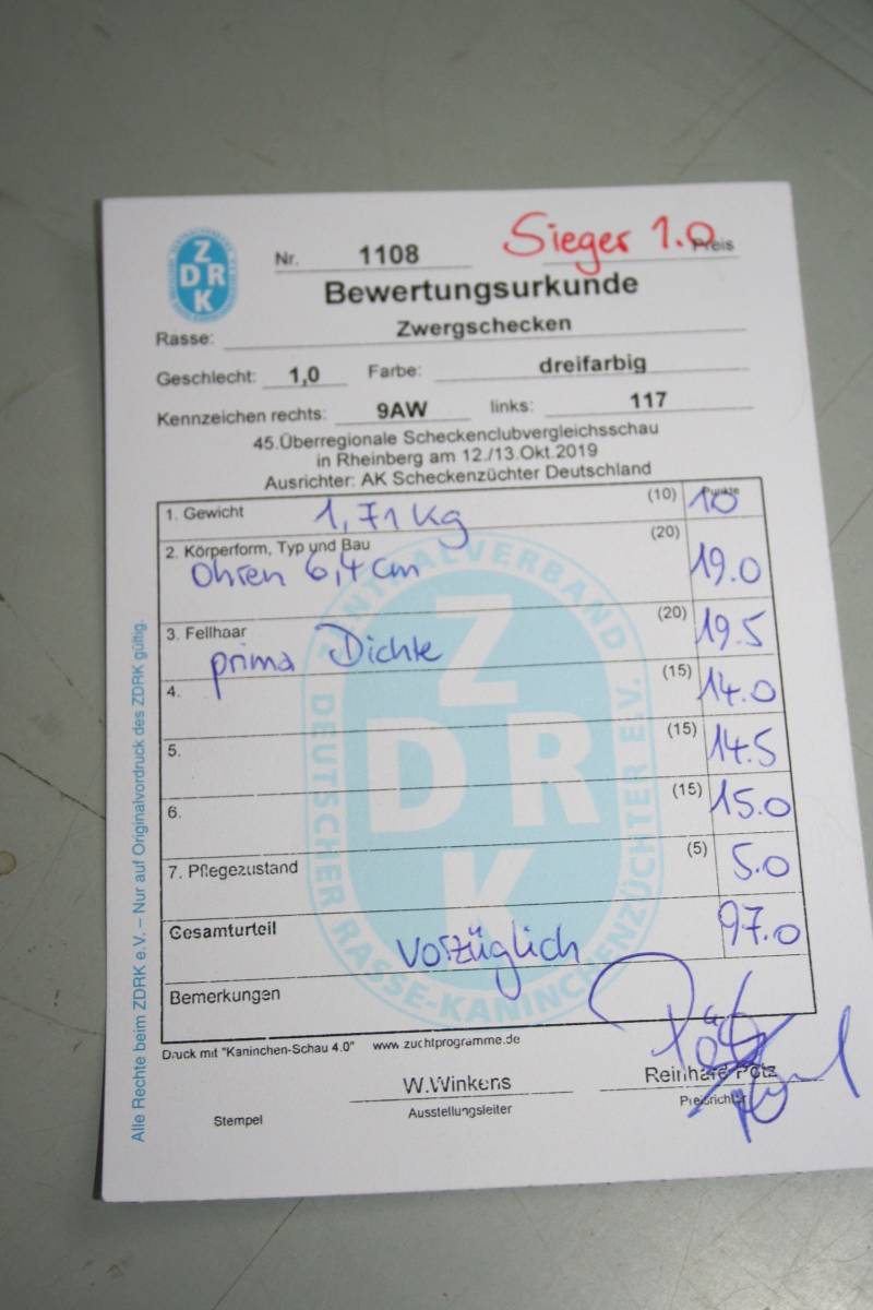 De 45. Uberregionalen Scheckenclub-Vergleichsschau 2019 in Rheinberg leverde naast een mooie twee prijs voor het mooiste 5-tal ook de "Sieger" prijs.