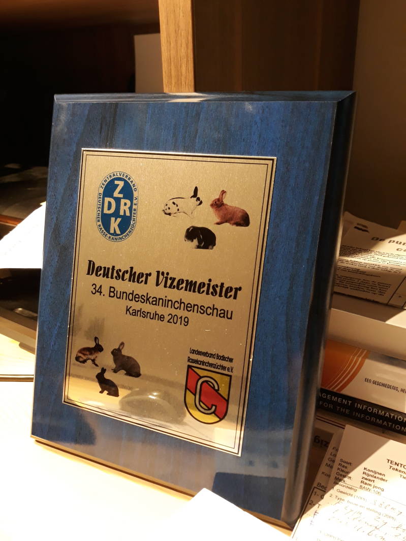 Het ingezonden 4-tal werd beoordeeld met 95-96,5-96,5-97. Een totaal van 385 punten wat de titel van "Deutscher Vizemeister" opleverde. Met gepaste trots is de prijs hiernaast afgebeeld.